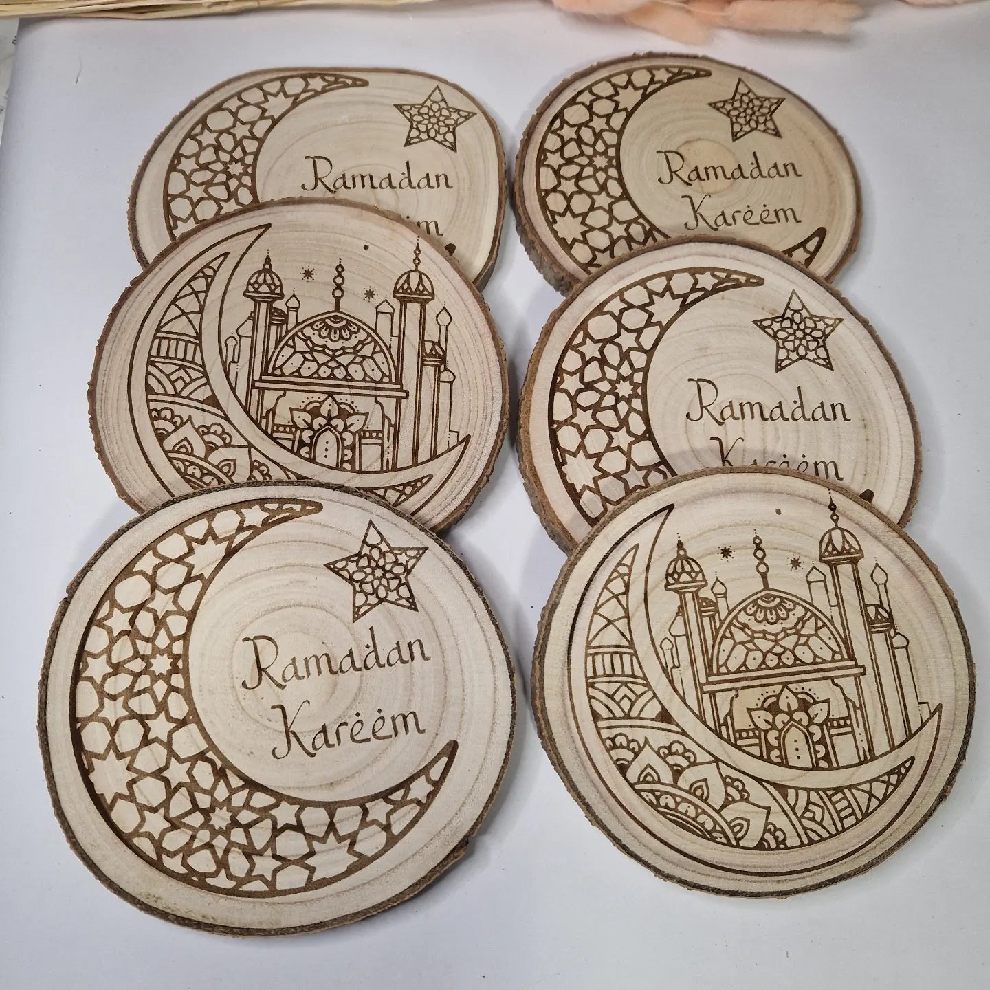 Rondins de bois gravés pour le mois de Ramadan